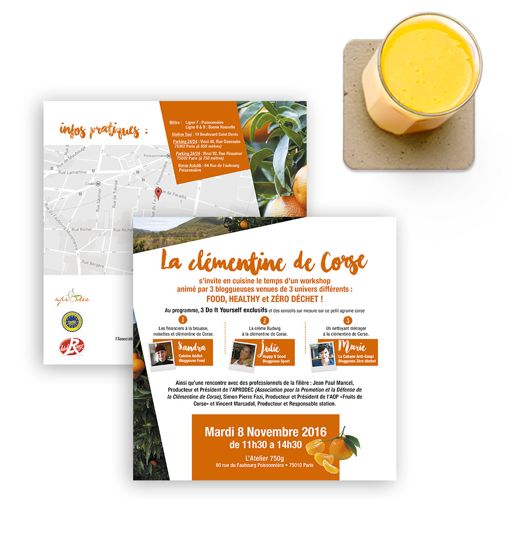 Création de la charte graphique du dossier de presse pour la clémentine de Corse.